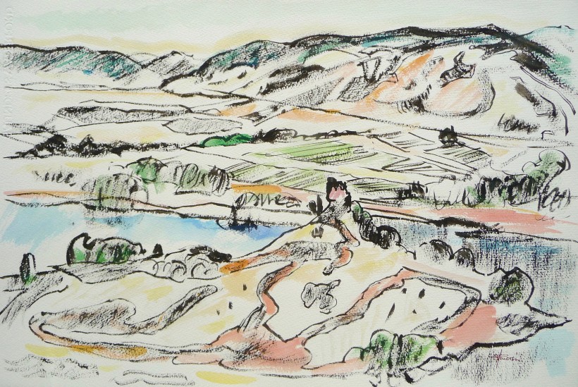 La "chapelle des clans" au printemps sur les coteaux du Salagou.